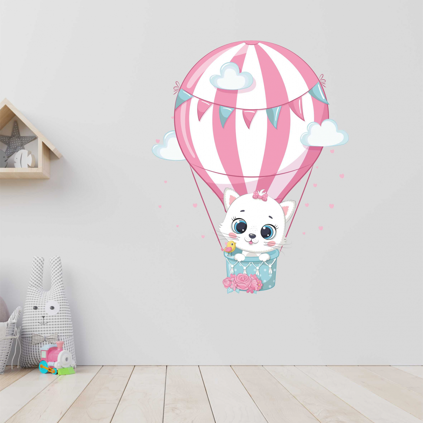 STICKER PERETE PISICA IN BALON